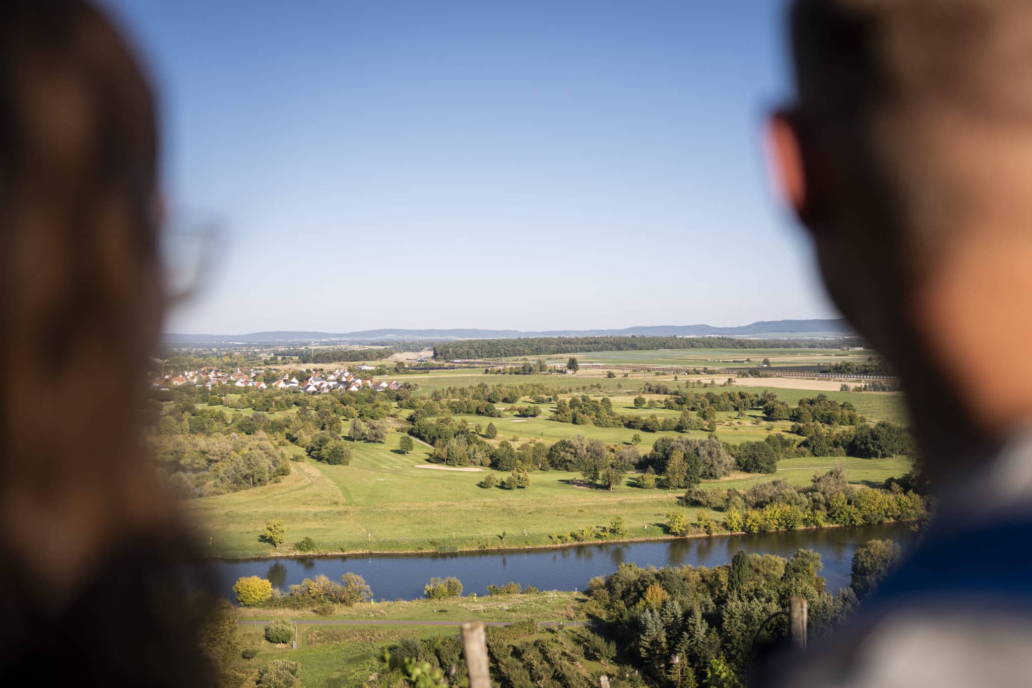 Nun geht es hinauf in Richtung der Weinberge. Auf der Hälfte des kleinen Waldes treffen sich die Weinlagen Escherndorfer Fürstenberg und Neuseser Glatzen. In östlicher Richtung führt der urwüchsige Weg nun direkt zur Aussichtsplattform auf dem Glatzenberg, wo sich auch die Stempel-Station der Traumrunde befindet. Den Altmain im Blick behaltend wird nun in Neuses am Berg die Kreisstraße überquert. Hinter den Zwiebeltürmen der Kirchen St. Nikolaus und St. Nicolai zeigt sich der romantische Altort von seiner schönsten Seite. Den Friedhof passierend, führt der Weg am Ortsausgang wieder in Richtung Dettelbach.